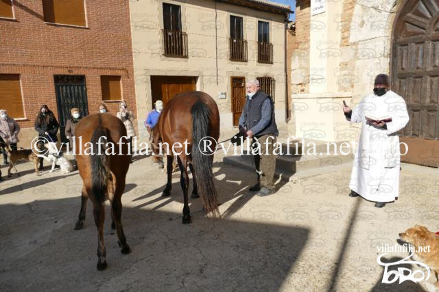 Capellanía o Patronato de Legos, fundado en la parroquial de Santa María del Moral de Villafáfila, posiblemente a finales del siglo XV, y en todo caso antes de 1504, por María Fernández, viuda de Fernán Fernández, vecina de Villafáfila, de presentación de los patronos, pues desde ese año la gozaba Diego de Robles[1], arcipreste de Villafáfila. Tenía de cargo el decir 50 misas rezadas al año. Cinco familias de la villa figuraban como patronos que gozaban entre sí de una heredad de tierras y que tenían derecho de enterramiento en la capilla. Poco sabemos de los fundadores que tal vez estuvieran representados por el orante con ropilla roja y la señora representados en una de las tablas del banco. María Fernández ya figura como viuda en el padrón de 1497. Sabemos que habían sido propietarios de una explotación salinera en Villafáfila, actividad industrial, de la que participaban en el siglo XV los principales vecinos de la villa, así clérigos, pecheros o hijosdalgos, pues se documenta en 1500 a: “una María Fernández vezina de la dicha villa que tenya una cabaña e arrendaba el monte de dicho don Pedro Pimentel[2] para faser sal en ella”[3]; En los apeos de cabañas de hacer sal de 1522 y 1528 se mencionan una cabaña y varias posadas de hacer sal, que pertenecían a la capilla de San Antonio, procedentes, sin duda, de los bienes dotales de la misma. Los patronos en 1647 son Diego de Traslago Macías Martínez, Antº Simón, Salvador de Villalba y Juan Pedrero de Bretó. En 1662 Antº Simón, Salvador Villalba, Antº Martínez, Juan García, viudo de Luisa Martínez y la viuda de Diego de Treslago. A principios del siglo XVIII los derechos de patronato recaen por herencia en la familia de los Costilla, y es capellán Pedro Costilla. En 1752 figuran como bienes del patronato tenía 48 fanegas, distribuidas en 18 fincas y 1 viña (en Valdeloma), de 1/2 fanegas, que rentaban 4 cargas de pan mediano; y tenía por carga 100 misas anuales. Todavía en 1822 se mencionan a las familias que tienen a cargo el patronato: D. Teódulo Orduña. D. Gabriel Costilla, el curador del dos hijas menores de don Gaspar Costilla, recién fallecido, Alonso Gutiérrez y Manuel Castillo. Con la desamortización las tierras pasaron a la propiedad efectiva de los patronos abonando una pequeña cantidad a la Hacienda Pública. Fiestas de San Antonio Abad “San Antón”, subasta del cerdo de San Antón La fiesta de San Antonio Abad era muy celebrada en Villafáfila, como devoción de la iglesia de Santa María del Moral, con la manutención del cerdo, la costumbre de criar uno o más cerdos que se subastaban el día 17 de enero para sacar limosnas con las que sufragar los gastos de la función de ese día, que se hacía ante el altar del santo y a la puerta de Santa María donde se acudía con los animales de labor engalanados para la ocasión. Se conservan las cuentas que recibía el santo entre 1847 y 1893 de las limosnas cuyo importe resultante de la subasta se destina a sufragar los gastos de la Fundación del Santo y unos años se rifaba el cerdo y otros no, según se hubiera criado por las calles el “marrano Antón”. En las cuentas de 1821 Leemos: “Dos celemines para la manutención de una cerda de San Antonio”. Otras veces se dice “el cerdo Antón”[4]. El último año de que se tiene constancia de subasta del marrano fue en 1880 que valió 328 reales. En Villafáfila pervivía la tradición en las fiestas de San Antón, hasta los años sesenta del siglo XX, donde se celebraba con gran solemnidad la festividad de San Antonio Abad, “San Antón”, patrono de los animales. En la liturgia se bendecía a los animales ante su imagen en el día de la fiesta y se recitaban los llamados refranes de “San Antón”, que eran pequeñas rimas recitadas por la quintada del año en burro, y parodiando acontecimientos que habían ocurrido el año antes en el pueblo o al propio santo. ¡O San Antón Glorioso! que estas en esa tronera, con el ojo de cristal, y el pito de madera[5]. También era típico entre la juventud, el tirar paja a la portalada de las casas, o lo que llamamos “echar marranas”, aún entre vecinos alguna se hace dejarla a la puerta como la de la fotografía.