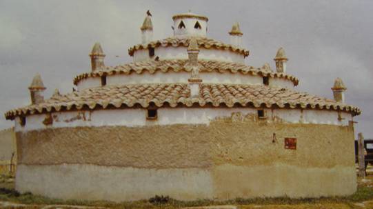 I. INTRODUCCIÓN En las extensas llanuras de la estepa cerealista de Tierra de Campos, se clarean en el horizonte sus antiguas y pintorescas siluetas. Aunque son muchos los ya los desaparecidos, no parece pasar el tiempo por ellos y cada día destacan más entre las modernas arquitecturas. Estas construcciones de adobe de formas diversas y típicas de esta zona, son fácilmente reconocibles por su identidad.