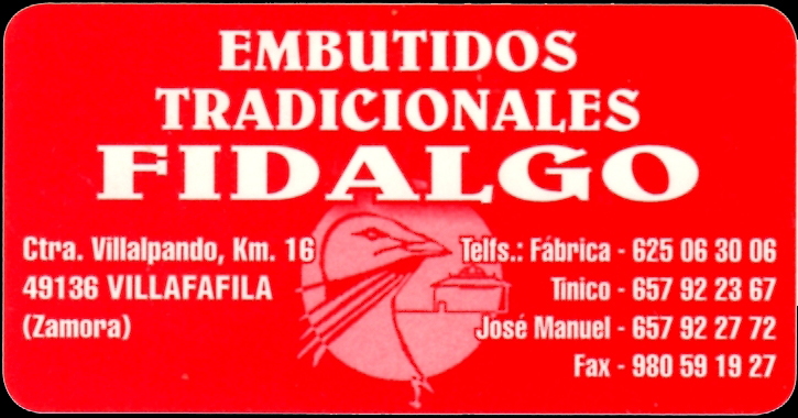 | EMBUTIDOS ARTESANALES FIDALGO Ctra. Villalpando Km. 16 49136 Villafáfila (Zamora) |