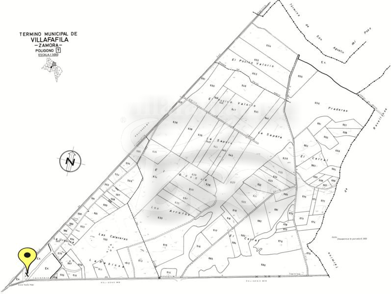 Mapas de Concentración Parcelaria de Villafáfila, polígono 7, finca 5017 ubicación de la ermita de la Vera Cruz