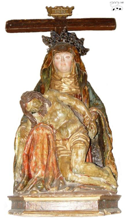 El 31 de 1605, nuestro escultor (Acosta), junto con el pintor Juan Álvarez de Escobar, contrataba con el mayordomo de la desaparecida iglesia de San Pedro de Villafáfila, la hechura de sea Piedad (A.H.P.Z. protocolo 686, sin fecha), entre las condiciones impuestas figuraba el que midiera una vara de alto, clausula cumplida casi al pie de la letra, pues la virgen mide sin peana 0,87 m.; otra condición era que tuviera a Cristo sobre las rodillas; el escultor sin embargo hizo recostar el cuerpo muerto sobre la derecha solamente, mientras el resto del cuerpo flexionado, dibujando una línea quebrada, para evitar el desplome la Virgen lo sujeta por los brazos de ambas manos. Otra de las imposiciones contractuales era que el grupo se esculpiera apropiado para ser sacado en procesión y también ello fue cumplido, pues se talló también por detrás. Es posible que esta pieza procediera en las procesiones de Semana Santa al Yacente de la misma Iglesia.