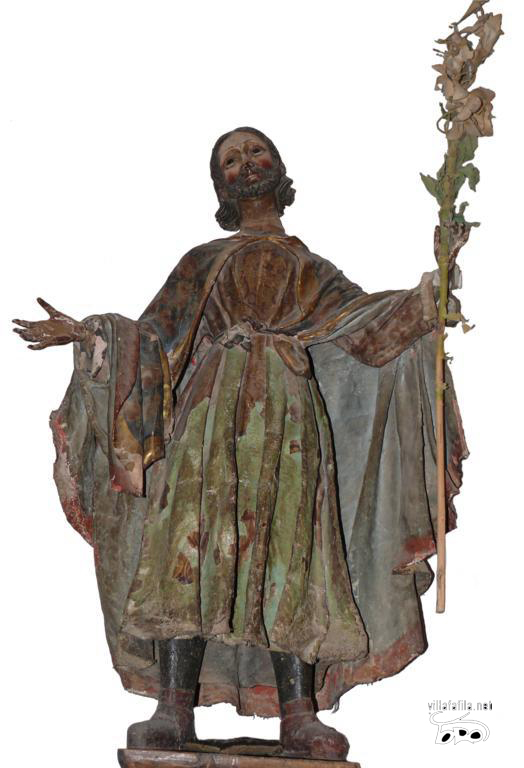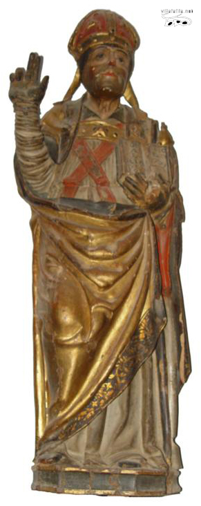 Otra referencia documental que tenemos de la imagen de San Blas señala que el maestro Alonso Villa Gómez la doró, juntamente con la de Santa Lucía, en 1700, percibiendo por su trabajo 290 reales[27]. No dudamos que se refiere a la imagen actual, de estilo barroco. Por tanto, queda la incertidumbre si nos encontramos ante la misma imagen de 1604 u otra distinta.