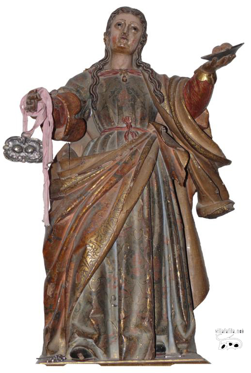 De la de Santa Lucía sabemos que fue dorada en 1700 por el Maestro dorador Alonso Villa Gómez, quien doró también la de San Blas y que por el trabajo de dorar ambas cobró 290 reales[23], aunque ignoramos su escultor, sabemos que fue esculpida en el año 1696, pues en las cuentas de dicho años se consigna la siguiente partida de gastos: "se le descarga (al mayordomo) cien Rs que dio al escultor que hizo la imagen de Santa Lucía"[24].