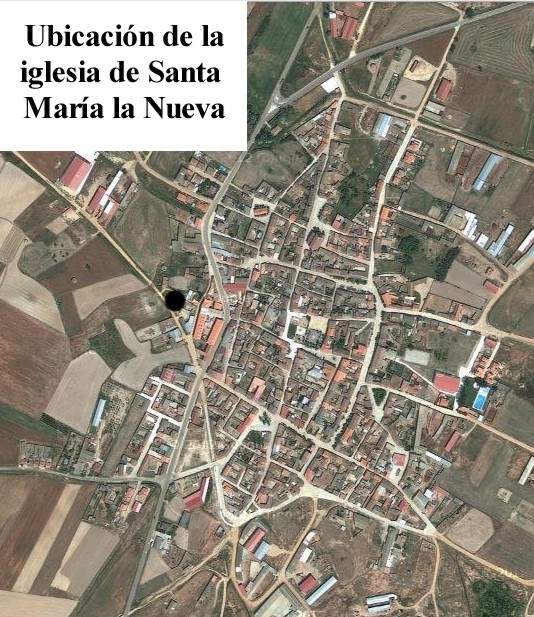 Respecto a la localización aproximada de la antigua iglesia, además de saber que estaba a las afueras, en terrenos que se encharcaban en invierno y dentro del territorio de la parroquia de San Pedro, por una relación de tierras de la iglesia de San Juan de 1670[50], se menciona una tierra “a la Fuente, que hace un celemín, y linda con la ermita de Santa María La Nueva y con las Pilas de la Fuente".