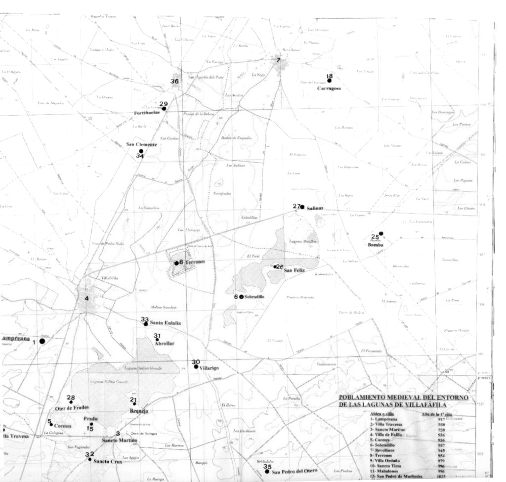 En la comarca que rodea las lagunas de Villafáfila se pueden documentar en el siglo X, por lo menos, 10 aldeas, otras 9 en el siglo XI, además de otras 13 en el siglo XII, cuya existencia parece ser anterior, lo que da una alta concentración poblacional, sobre todo en las proximidades de las lagunas, cuya razón debía de ser, no sólo la colonización agropecuaria del territorio como en otras áreas de Tierra de Campos, sino la explotación de las salinas, actividad lucrativa que tuvo que atraer la presencia de numerosos pobladores en época medieval.
