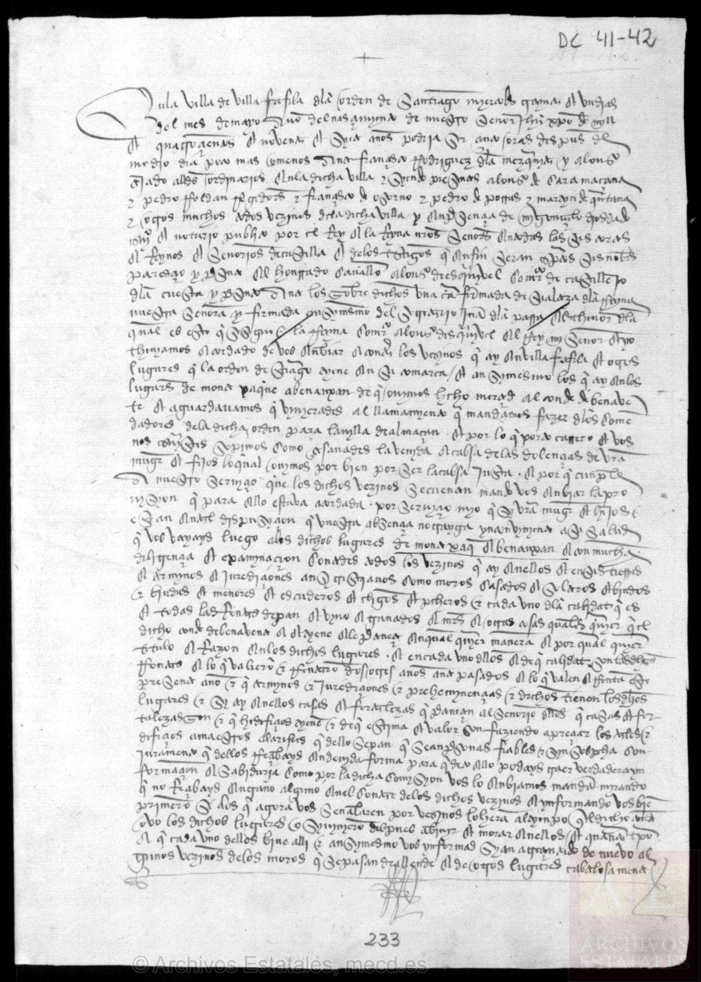 El 23 de abril de 1229 D. Alfonso concedió fuero a la ciudad de Cáceres, que desde su nueva reconquista en 1227 había sido patrimonio real. Esto no agradó a la Orden, que la había poseído por donación de D. Fernando II, siendo como hemos visto su cuna. DONACIÓN DE VILLAFÁFILA Y CASTROTORAFE POR D. ALFONSO IX A LA ORDEN DE SANTIAGO 1229 La villa de Villafáfila pertenecíó la Orden Militar de Santiago desde la donación definitiva que de ella hizo Alfonso IX en 1229. El rey para congraciarse con la Orden, con consentimiento de las infantas Dª Sancha y Dª Dulce le dio en 1229, ciertos derechos en Villafáfila y Castrotorafe y 2000 msr. a cambio de juramento de hacer la paz o la guerra por él y por sus hijas. Prometió, además, llegado el caso, no entregar Cáceres a otra Orden que no fuese la de Santiago. El maestre Pedro González aceptó la voluntad del rey y éste siguió protegiendo la Orden. Viene a confirmar el Convenio entre Alfonso IX, hijo del anterior Fernando II, y el Maestre de la Orden Pedro González: “… todos los habitantes y sus herederos de Villafáfila y Castrotorafe y de sus alfoces sean vuestros vasallos y no de otro”. No obstante, exceptúa a los hidalgos. Y como consecuencia de dicho vasallaje le corresponderán a la Orden los consabidos derechos señoriales 1º Derechos tributarios: El portazgo o castellaje, el Diezmo, Martiniega y Mesa Maestral, Yanteres, Escribanía. Según consta en el archivo del Obispado de Astorga, las rentas de la Orden de Santiago en esta villa en el año 1497, por los conceptos anteriores y por las procedentes de bienes propios de la Orden en este término. “Ab illa expulsa peganarum gente et reintegrrata chistianourm societate, memoratus rex dedit in cambio fratribus Spata qui demanabant Caceres pro sua hereditate Villafáfila, Castrotorafe et duos mille marebetinos pro ista villa Caceres”[9]. “expulsada de ellos la gente pagana y reintegrada la sociedad cristiana, el memorado rey dio en cambio a los caballeros de Espata, que demandaban Cáceres, por su heredad Villafáfila, Castrotorafe y dos mil morabetinos por esta villa de Cáceres”. 1229, mayo. Galisteo Alfonso IX da a la Orden de Santiago las villas de Villafáfila y Castrotorafe, en compensación de la villa de Cáceres, y establece diversas reglas privilegiadas para el gobierno de aquellas: “Notum sit omnibus hominibus presentem paginam inspecturis quod cum orta esset contencio inter me dominum Aldefonsum, Dei gratia regem Legionis et Gallecie, ex una parte, et nos domnum Petrum Gonzalui, magistrum et fratres Ordinis milicie Sancti Jacobi, ex altera, super uilla de Canceres et terminis suis, quam nos ad ius nostrum ex donatione bone memorie illustris regis domini Fernandi Legionis credebamus de iure spectare, tandem contencio ipsa de beneplacito parcium est sub hac forma sedata. Ego siquidem predictus vex domnus Aldefonsus, cum consensu filiarum mearum infancium domine Sancie et domine Dulcie, do et iure hereditario in perpettum concedo uobis predictis magistro et fratribus uestrisque successoribus et ordini uestro Villam fafilam cum omnibus directuris et pertinenciis suis, tam habitis quam habendis, et cum fazendaria[10], pecto[11], petito[12], et fonsadaria[13], et cum omni alio iure regali preter monetam. Que se sepa a todos los hombres, la presente página, que, cuando se originó, era surja un conflicto entre el yo fijada para el señor Alfonso, la gracia de Dios, rey de León y Galicia, por un lado, y nosotros, para preservar la Petra Gonzales, el maestro y los hermanos de la orden de los caballeros del Santo de Jacob, por el otro, en el pueblo de Cáceres y la costa del mismo, a modo de regalo, de buen recuerdo de nosotros que nosotros a la derecha de la Legión de Fernando, el ilustre rey del Señor, que cree que al mirar a la derecha, que finalmente logró calmar una controversia surge en virtud de este método, es la misma verdad de la buena voluntad de las partes. Estoy a favor de las normas antes mencionadas el señor Alfonso, con el consentimiento de las hijas de mis manos, infancium, Señor, se establece y proporciona, Señor, Dulce, que dan y por derecho de herencia en el perpetuo, lo reconozco, el Maestro antes mencionada y sus hermanos, a sus propios sucesores, ya que el orden en que su propia granja, Villafáfila, con todos los directuris y sus accesorios, tanto en lo que uno estimar el peso y la con el facendera, tarjetas, tema y sobre fonsadera, además de no acuñar moneda, y, con la totalidad de una regla diferente del reino. 1.- Item do uobis uestrisque successoribus iure hereditario in perpetuum illam medietatem petiti quam annuatim de Castro toraf et de suo alfoz percipiebam siue percipere debebam, concedens nichilominus uobis et ordini uestro et confirmans Castro toraf cum omnibus directuris et pertinenciis, et cum fazendaria, pecto, petito et fonsadaria, et cum omni alio iure et uoce regia. Además, os doy a la suya, las peticiones de los sucesores de la mitad de la derecha de derecho hereditario a perpetuidad a que se dieron cuenta de cada año o alfoz de Castrotorafe perciben de su propia, y que debería, lo concedieron y, sin embargo, a usted ya la Orden Castrotorafe, con todos los directuris sus lados, y con el fin, lo que confirma, y accesorios, y con la facendera, tarjetas, ese buscaréis, y fonsadera, cuando tanto la voz y el palacio real, y todo de una regla diferente. 2.- Item do uobis uestrisque successoribus iure hereditario in perpetuum illam medietatem de bestiis quas percipere consueui de Castro toraf et de suo alfoz percepturus eram ab hodie in antea de Villafafila et de suo alfoz, cum deberem exercitum congregare. También se dará más favorable a sus sucesores por hereditaria de forma permanente se dan cuenta de que la mitad de los animales que era consueui Castrotorafe y su alfoz para recibir desde el día de hoy acerca de la Villafáfila y su alfoz, con la obligación de acoger la misma. 3.- Debeo autem in 