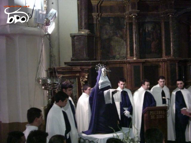 Sobre principios de 1800 ya era costumbre juntarse el Domingo de Ramos en la iglesia de San Martín para rematar por el procedimiento de subasta el dinero que daban por llevar las imágenes de Jesús, de Ntra. Sra. María y las cruces de pedir. En 1820 por Jesús pagaron 6 fanegas de pan, pagaderas en agosto, 40 reales por llevar a María y dos fanegas por las cruces de pedir. En 1821 se pagan 120 reales por Jesús y 100 por María. Desde 1831 se subasta además de las anteriormente mencionadas, la imagen de San Juan y la trompeta, por lo que es de suponer que desde entonces se celebrara la ceremonia del Encuentro, y ese año valen menos: Jesús 72 R., La Virgen 33 R, S. Juan 9 R, la trompeta 9 R, y las cruces de pedir 7 reales. La imagen de La Virgen recibe diversas denominaciones como La Soledad o María.