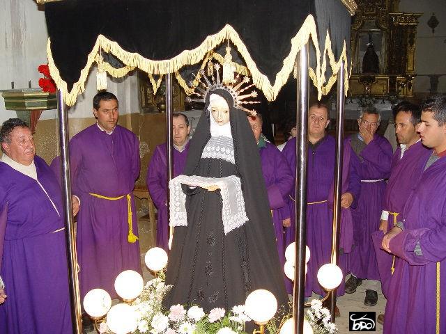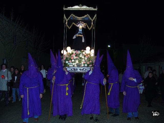 El Sábado Santo por la mañana se iba a recoger agua bendita. La Procesión de la Soledad con dicha Virgen, que sale a las diez de la noche, que se realiza desde el año 1959, en que solo desfilan mujeres, portando velas y faroles y todas las mujeres haciendo dos filas.