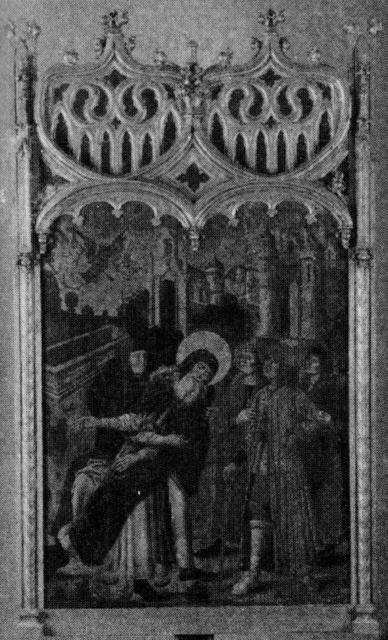 Retablo de San Antonio Abad, del Maestro de Villafáfila, Las Tentaciones de San Antonio. Pertenencia del Retablo de San Antonio Abad y ubicación en la iglesia de Santa María del Moral El retablo pertenecía a la capellanía o patronato de legos de San Antonio Abad, que tenía en la iglesia de Santa María del Moral, situado el retablo de la parte lateral de la nave de naciente o epístola, 1º tramo (lado derecho)[7], que estuvo desde principios del s. XV hasta 1908, un retablo a bese de unas tablas, pintadas la vida y tentaciones de San Antonio Abad. En los altares que hubo en Santa María del Moral como especifica en el (Lib. Fáb. Santa María del Moral, 1692-1771. pág 17), se mencionan los alteres habidos entre ellos el de: “San Antonio Abad”[8].